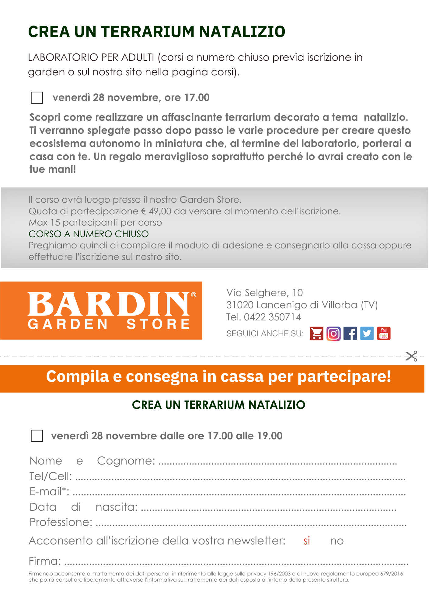- Date Disponibili: 28 novembre dalle 17.00 alle 19.00 presso il nostro Garden Store.