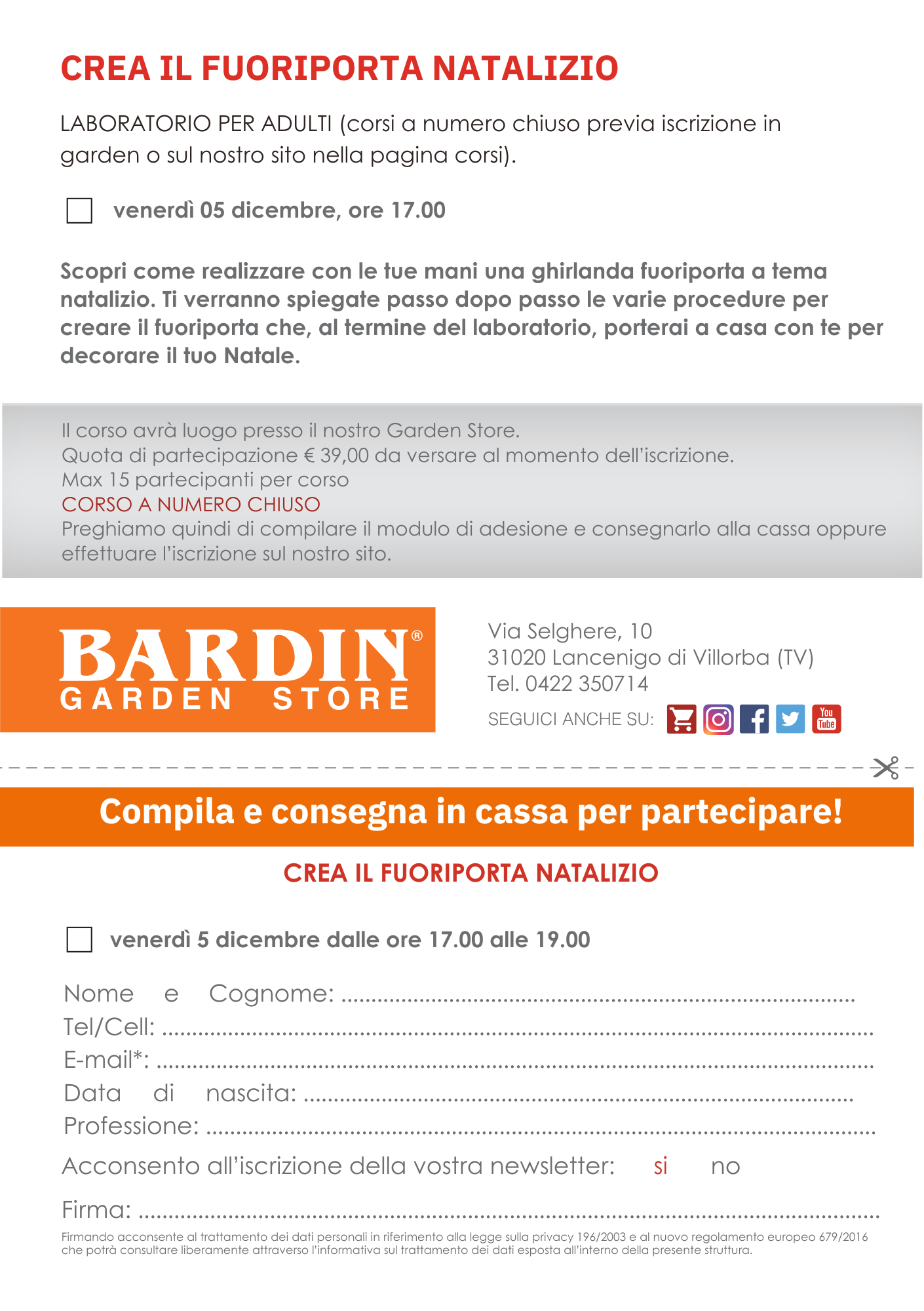 I posti sono limitati: iscriviti online compilando il modulo in questa pagina, oppure vieni in garden e riservalo direttamente.