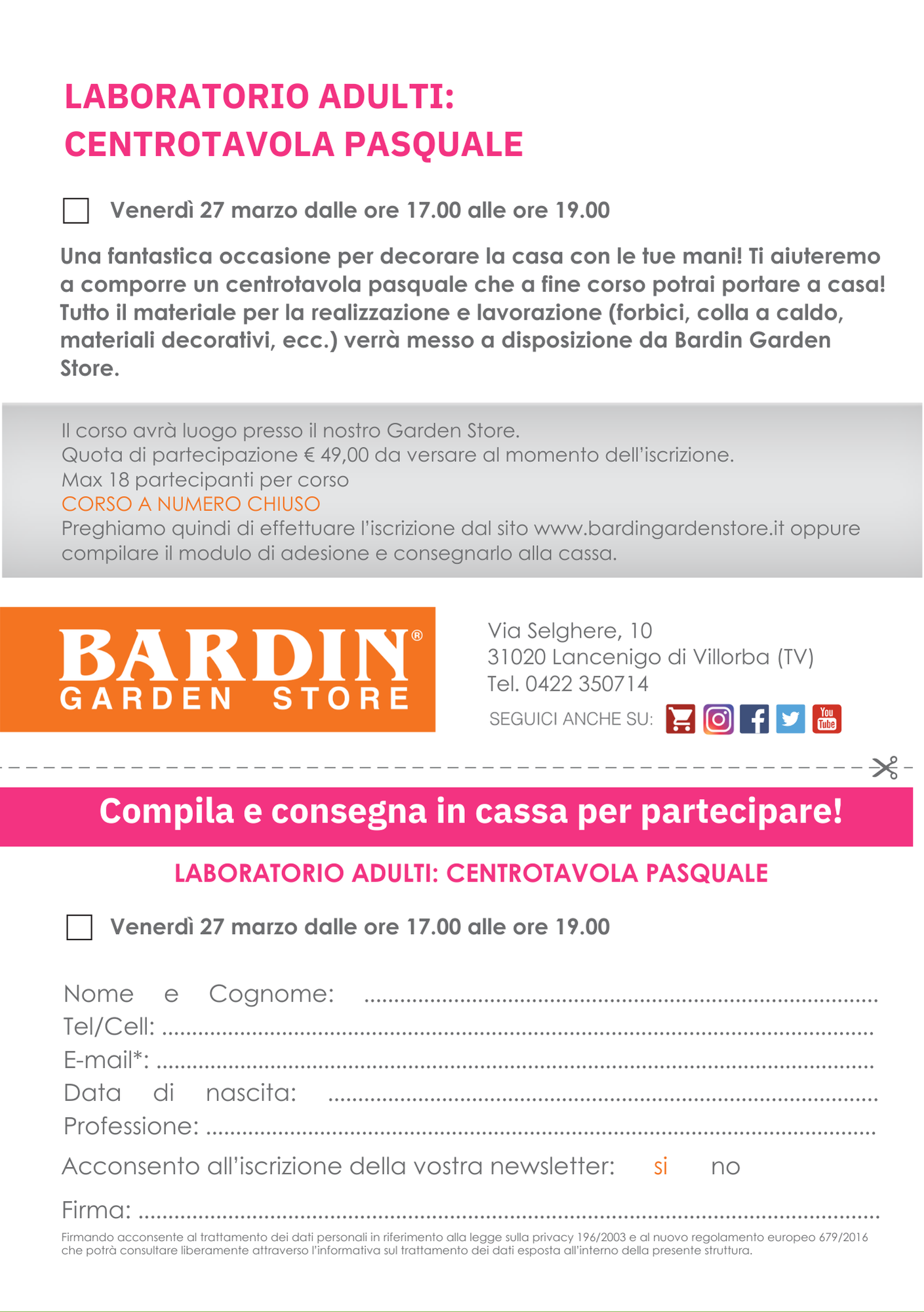 Non perdere l’opportunità di rendere la tua tavola pasquale ancora più speciale. Iscriviti ora su questa pagina del nostro sito oppure presso il nostro Garden Store e porta a casa il tuo centro tavola pasquale fatto a mano.