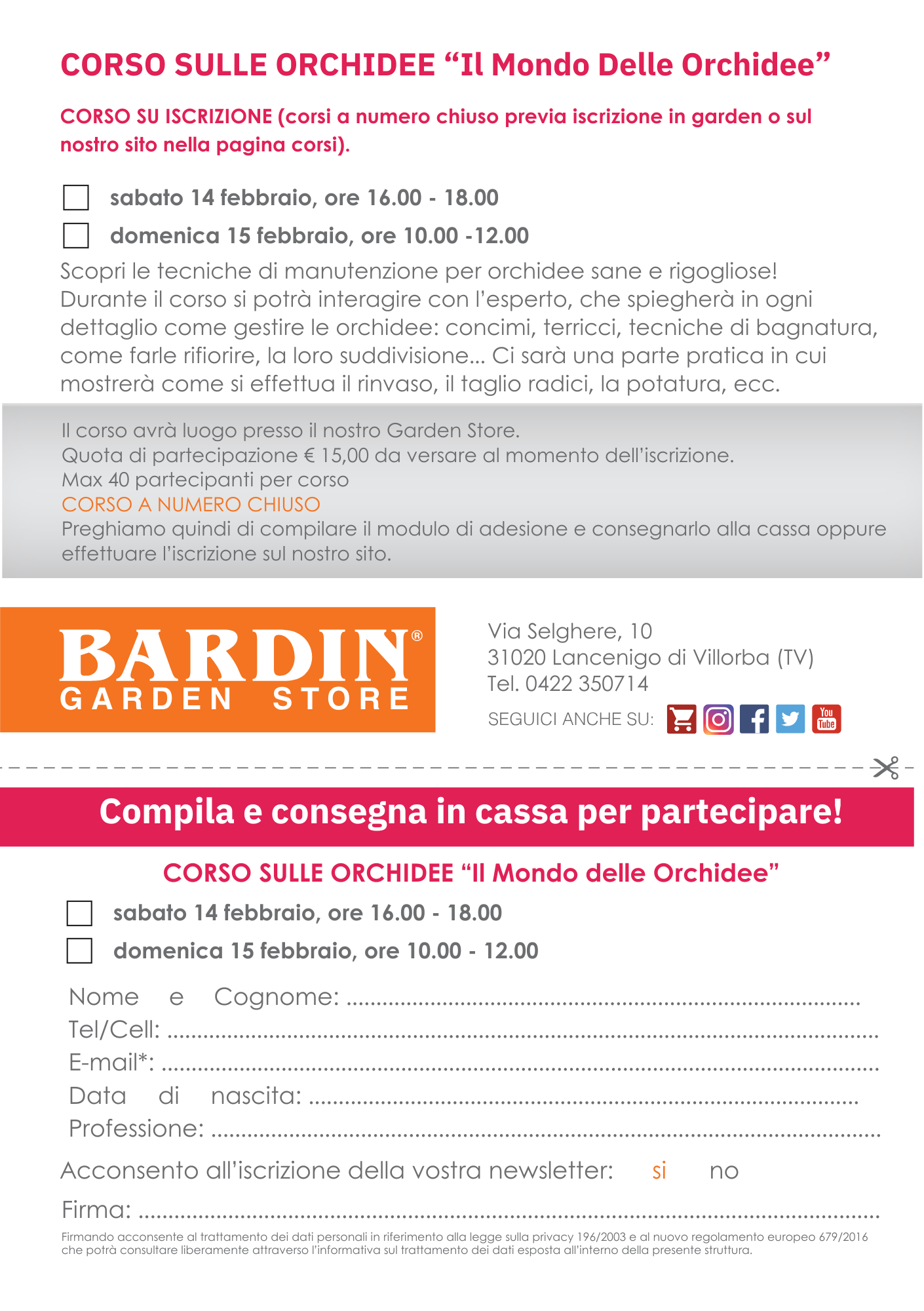 Sabato 14 febbraio e domenica 15 febbraio, il nostro Garden ospiterà un corso interamente dedicato alle orchidee. Se vuoi imparare a prenderti cura delle tue orchidee, questo appuntamento è imperdibile!
