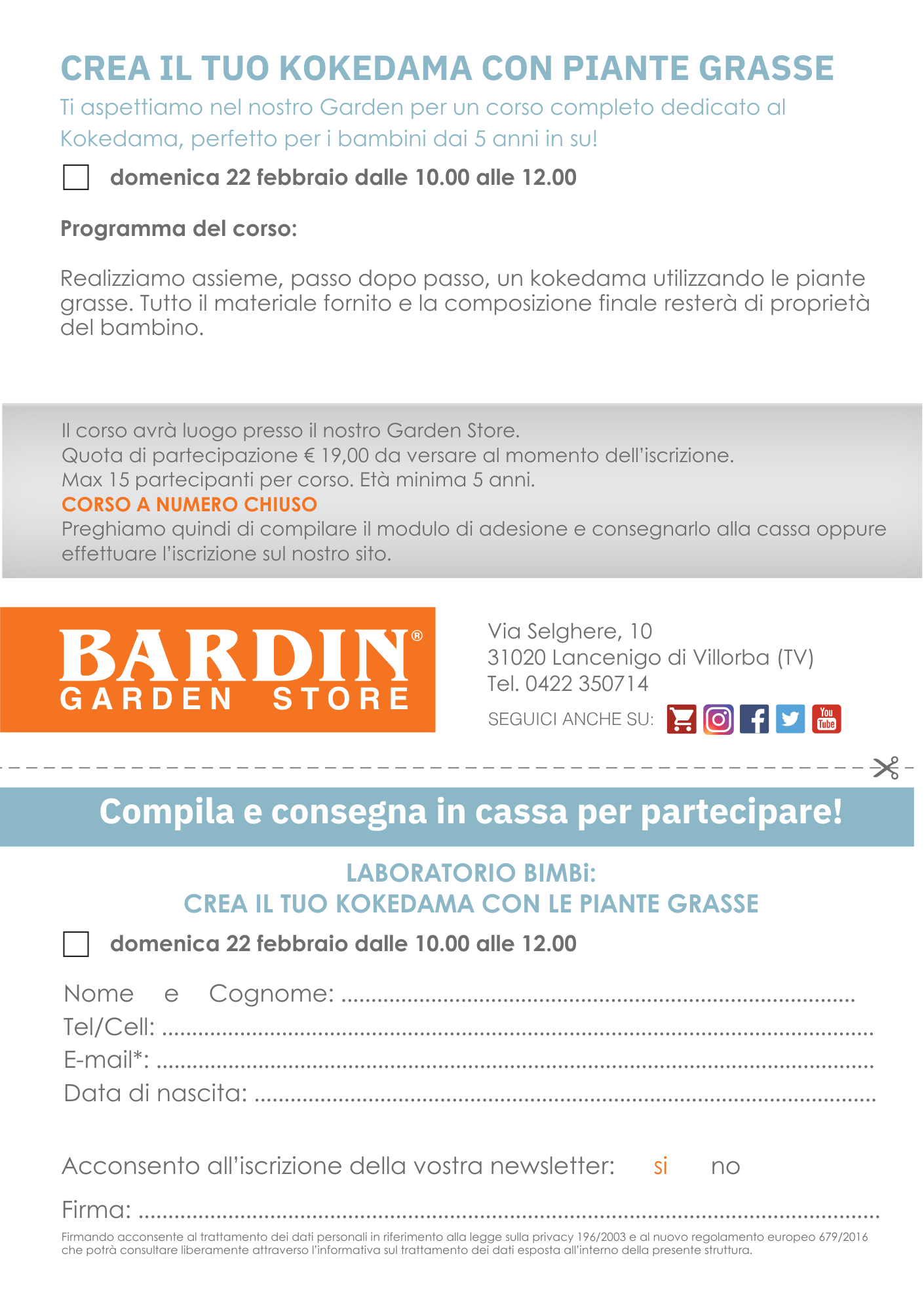 I posti sono limitati, quindi non perdere l’opportunità di far partecipare i tuoi bambini a questo entusiasmante corso. Iscrivili ora sul nostro sito web o presso il nostro Garden Store!