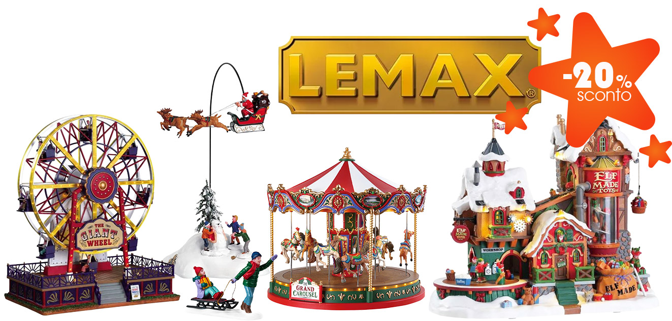 Il villaggio Lemax Christmas è molto più di una semplice decorazione: è un universo in miniatura che ti catturerà con il suo dinamismo e la straordinaria realtà di ogni elemento. Vivrai un’esplosione di luci, colori vibranti, personaggi animati, giostre, impianti da sci, mongolfiere e tutto ciò che renderà il tuo mondo natalizio una meraviglia da vivere.